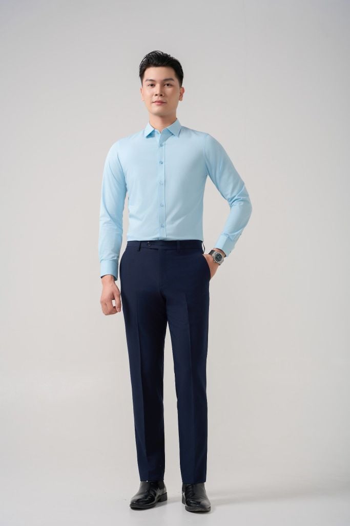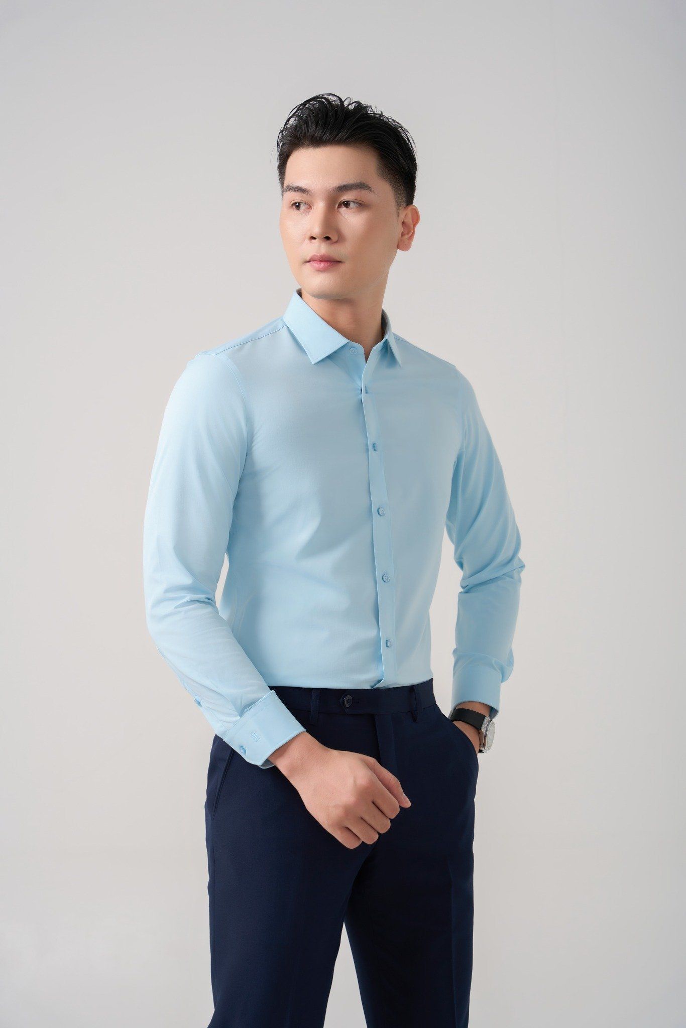 - Áo sơ mi với chất liệu Bamboo thoáng mát, bề mặt vải bóng mịn