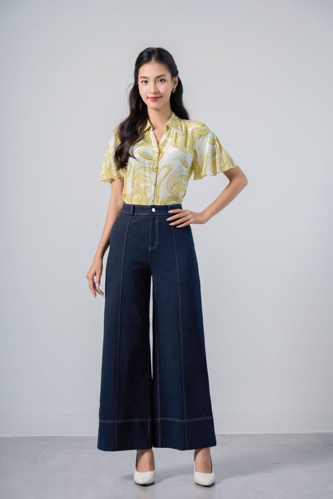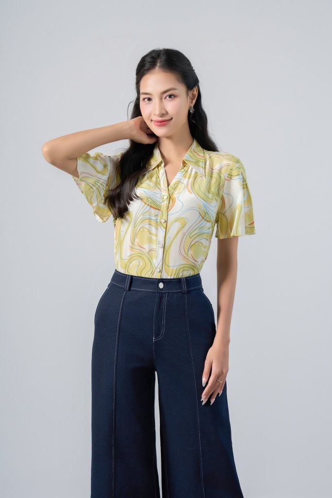 - Áo sơ mi cộc tay form dáng công sở nẹp ngả, tay có ly xếp đính cúc trang trí. Phù hợp quý cô văn phòng