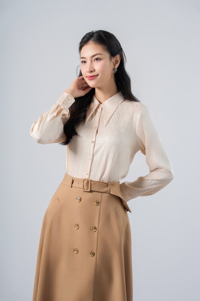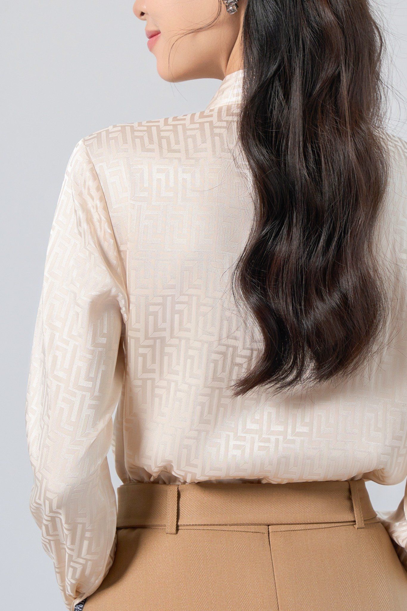 • Chất liệu lụa dệt nổi hoạ tiết. Màu sắc tone be trung tính dễ mặc