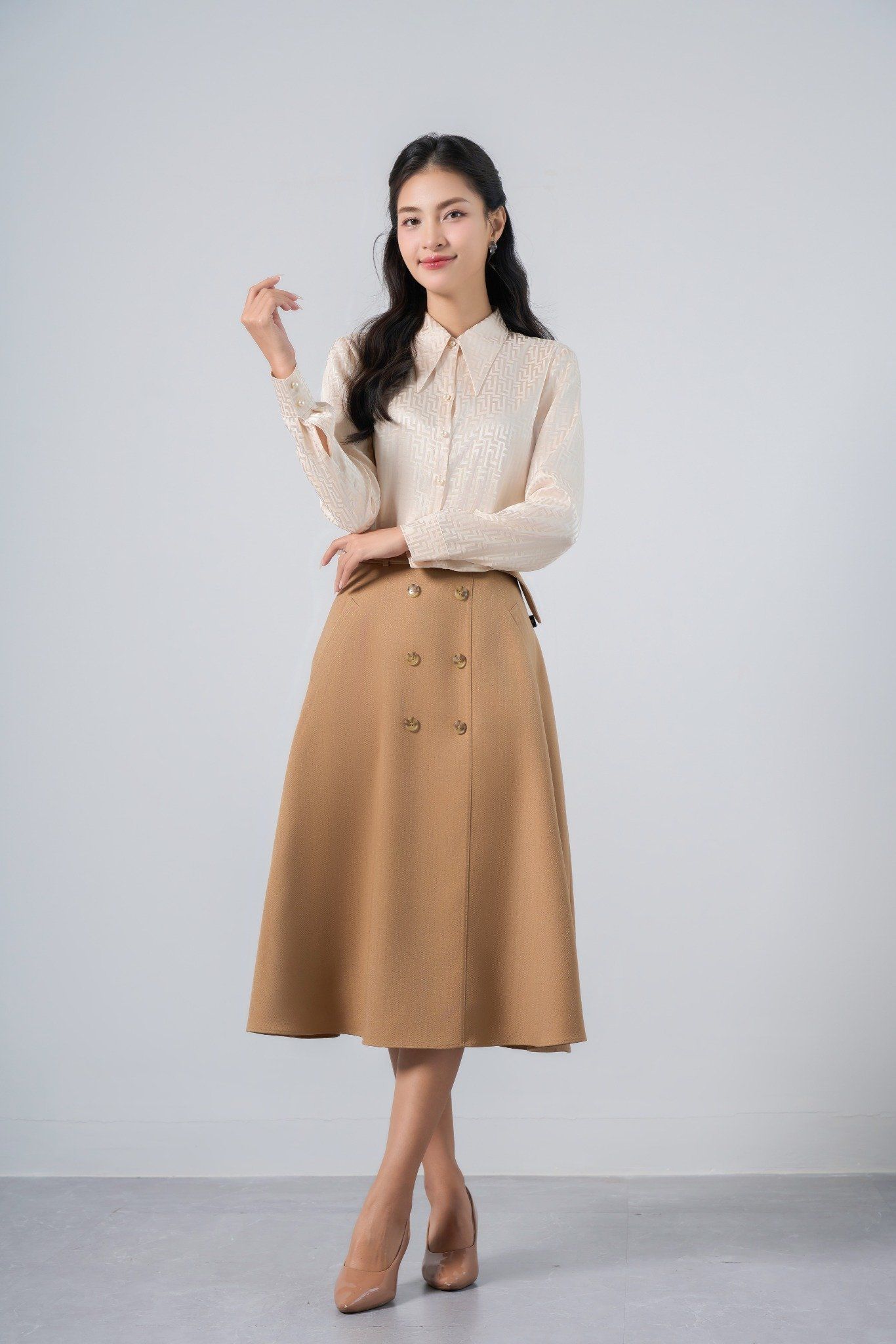 • Áo có thể mix cùng các loại chân váy hoặc quần tone trầm tương phản đều phù hợp
