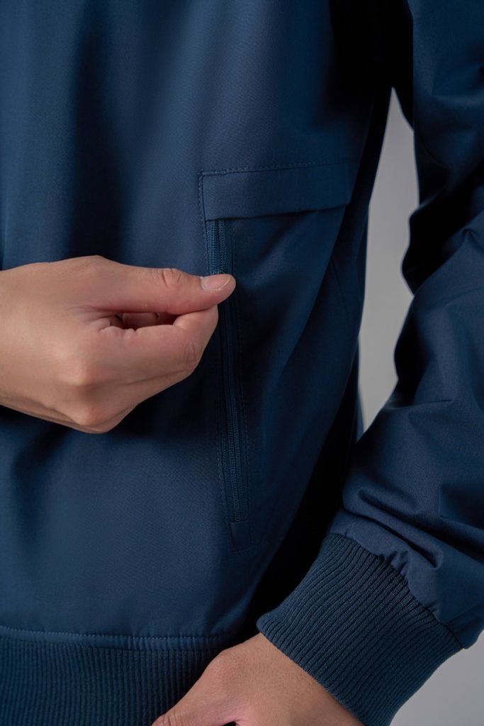 - Thiết kế cổ bomber bo gân vừa giữ ấm vừa mang lại vẻ nam tính trẻ trung; Tay dài bo gân cùng tông với cổ và gấu áo, giúp ôm nhẹ cổ tay, tăng cảm giác thoải mái và giữ dáng tay gọn gàng