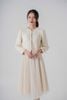 | Chi tiết cắt may nổi bật | Cài móc ẩn giữa thân Viền ngọc trai chạy dọc nẹp và gấu Bề mặt ren dệt nổi họa tiết hoa sao Viền beading ngọc trai thủ công |