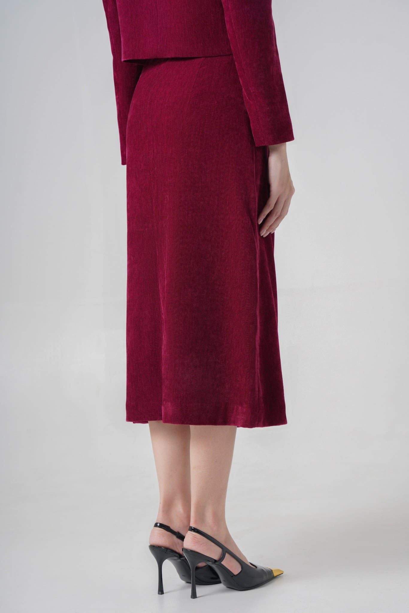 | Form dáng | Áo phom ngắn dáng suông nhẹ kết hợp chân váy dài dáng A . | |