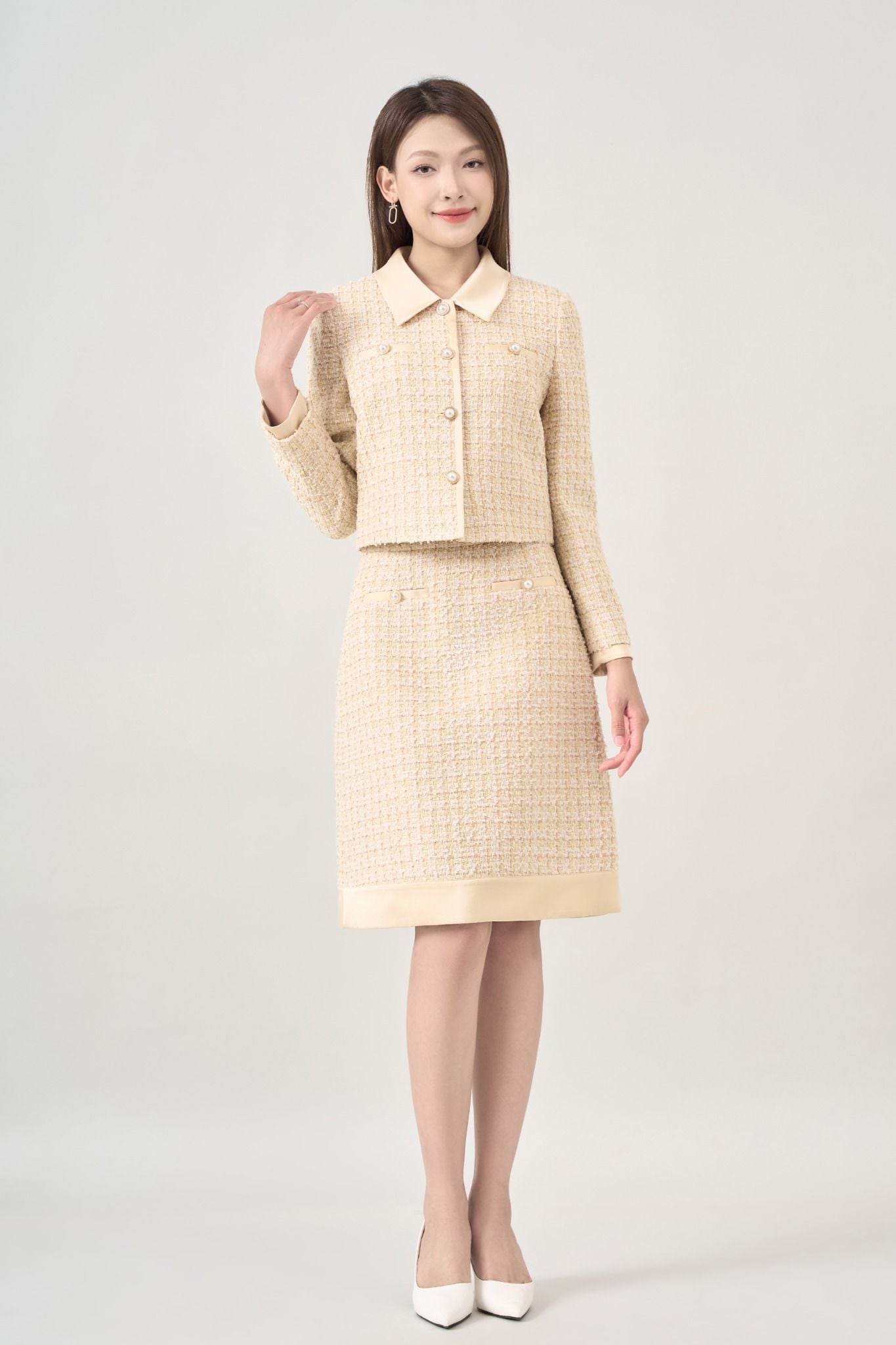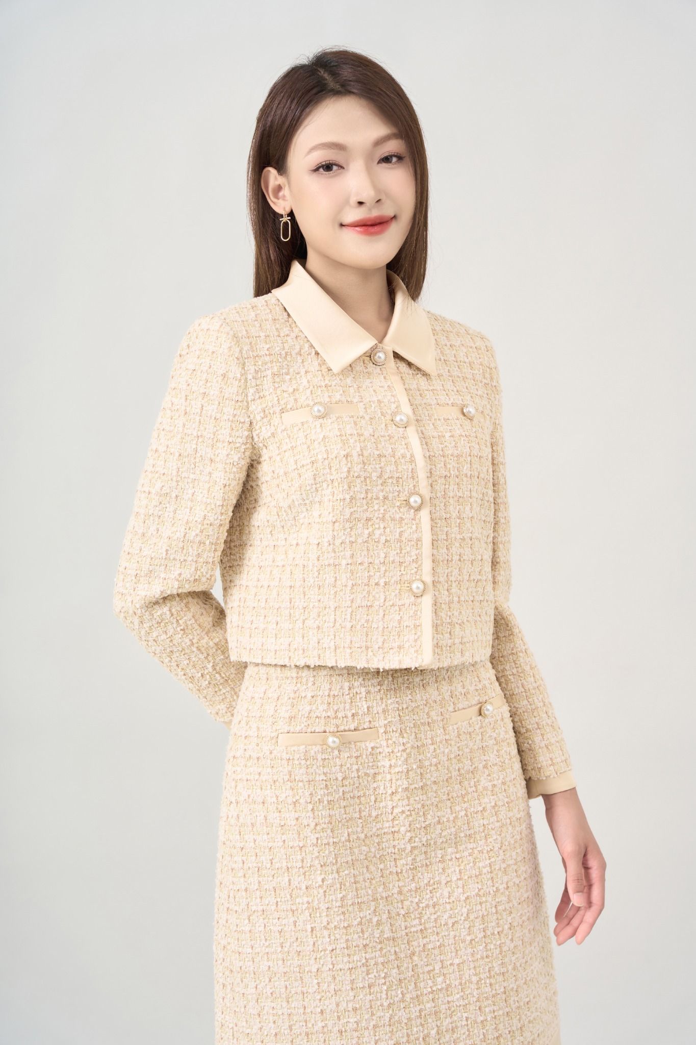 - Chất liệu tweed cung tông mầu xu hướng độc lạ