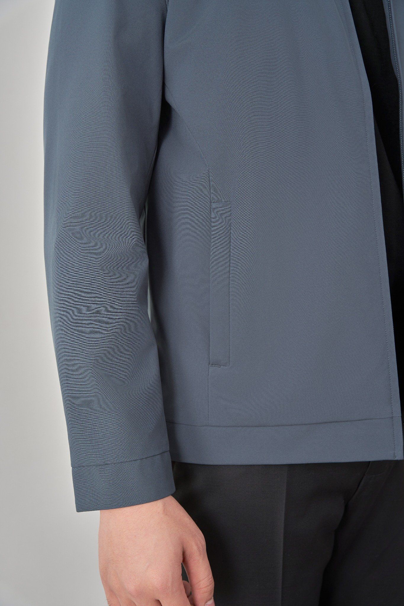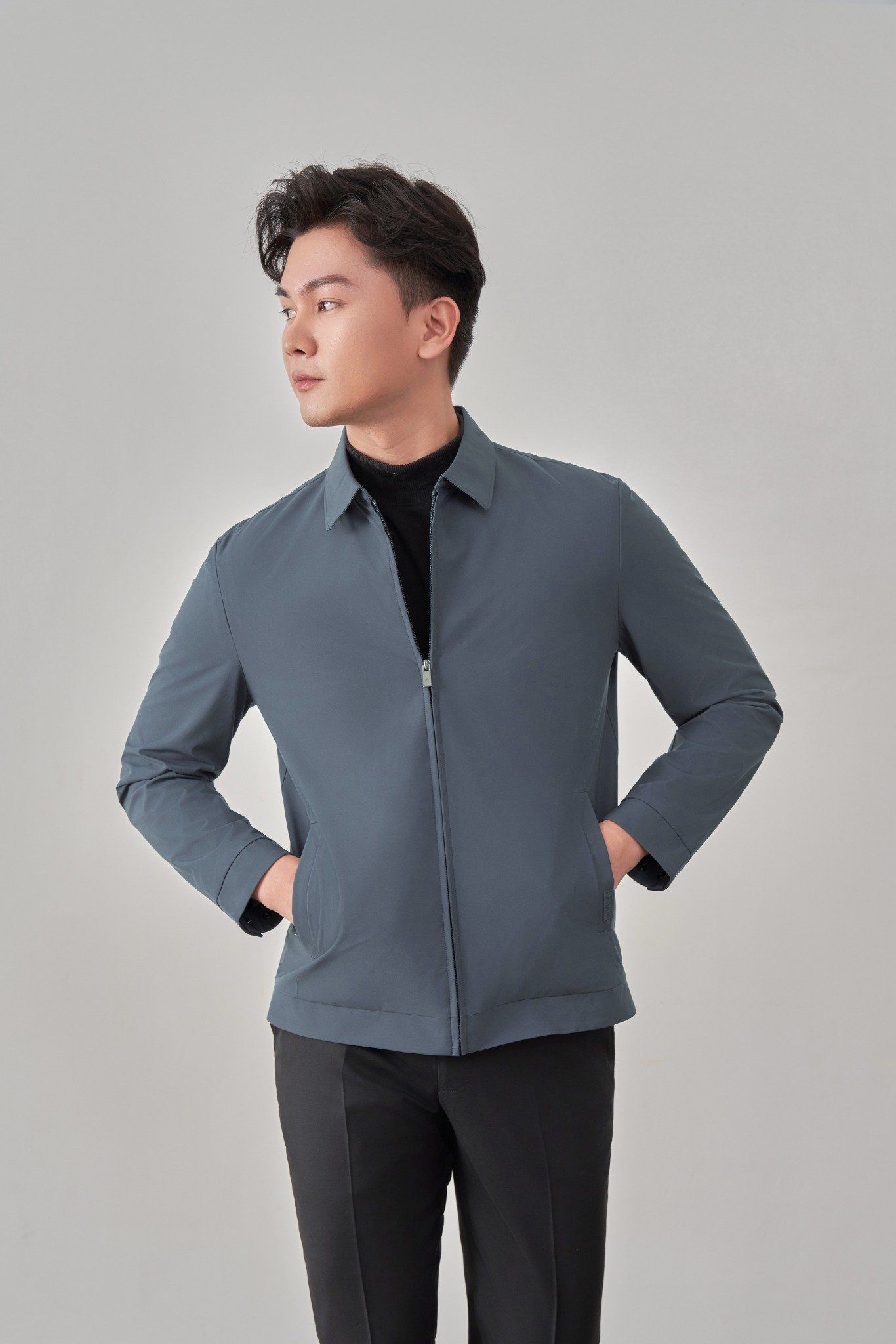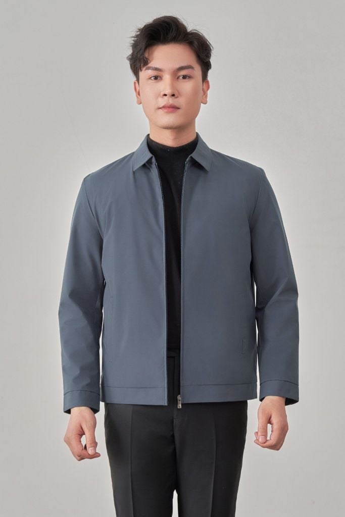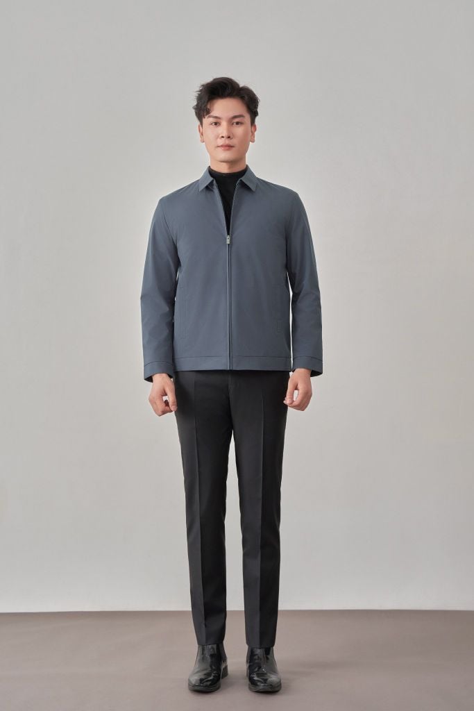 • Sản phẩm áo khoác có cổ bẻ cứng cáp, cổ tay cài khuy và túi áo ngoài có khóa kéo