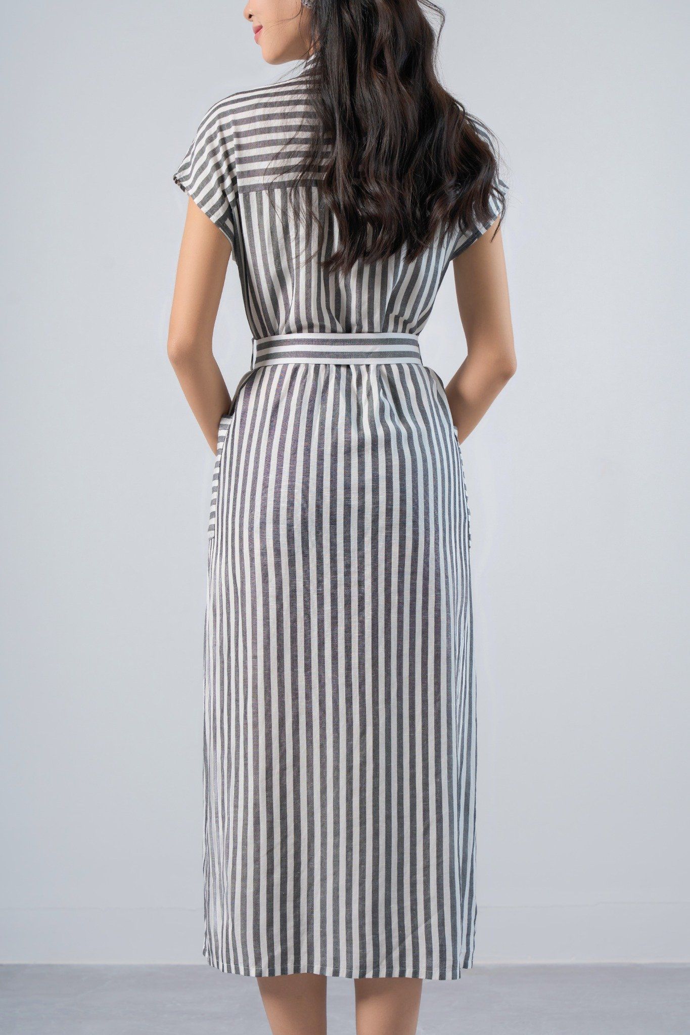 - Đầm sơ mi tay chờm dáng suông thoải mái, có phần nơ thắt dây buộc, xẻ 2 bên, phần cổ đức nên vẫn mặc đi làm cuối tuần hoặc đi chơi đều phù hợp