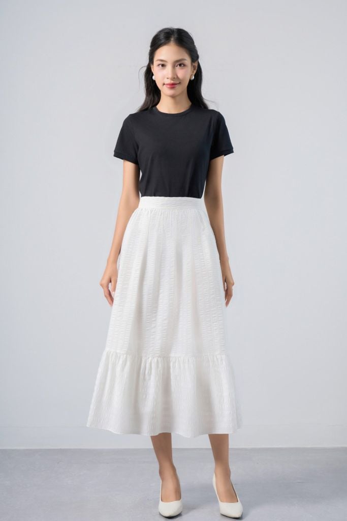 • Chân váy có thể mix cùng áo cùng bộ hoặc áo 2 dây, ba lỗ, áo phông đơn giản
