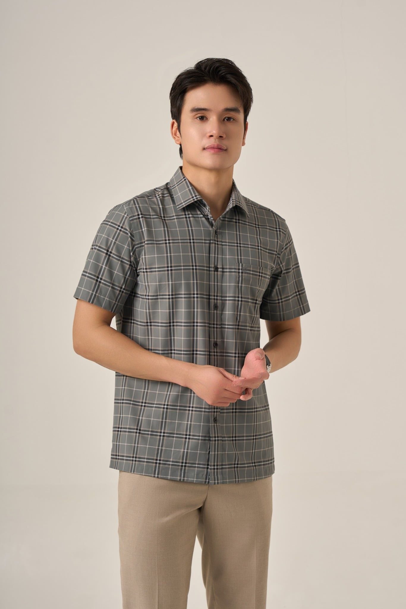 Sơ mi nam cộc tay GrusZ form RegularFit mã 010125041GZGB AK637