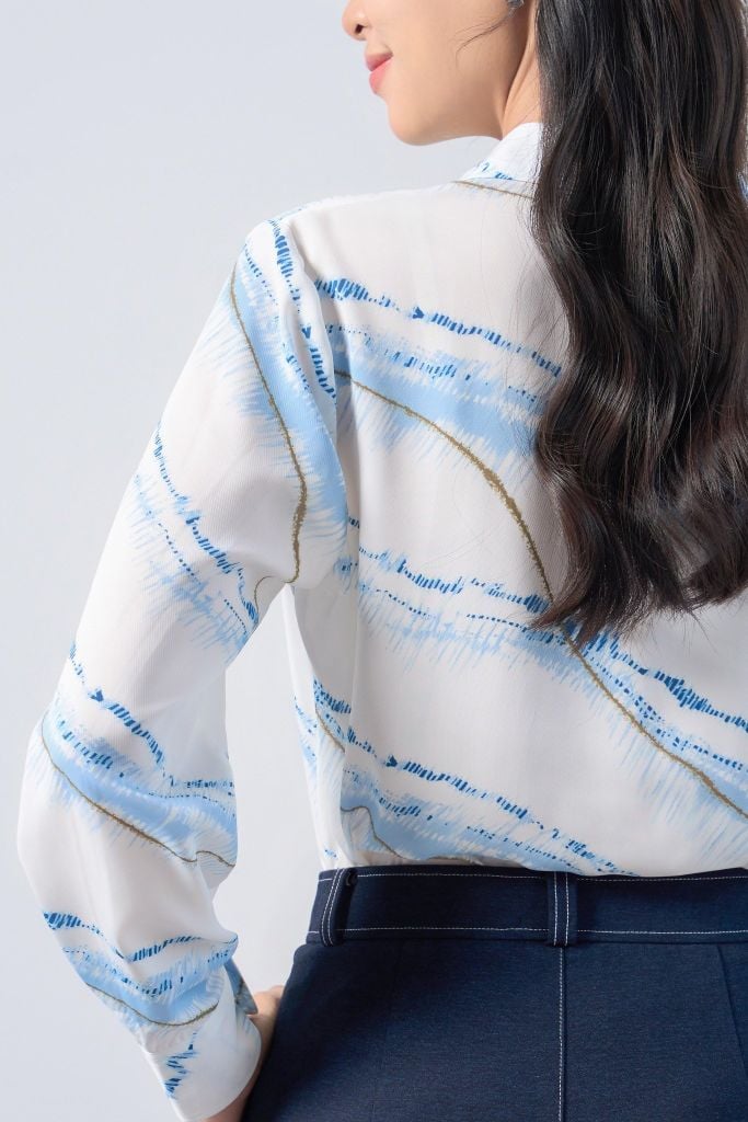 - Áo bề mặt không nhăn, dễ dàng cho việc giặt là, họa tiết hoa vân đá trên nền trắng rất sáng da và sang trọng lịch sự cho người mặc